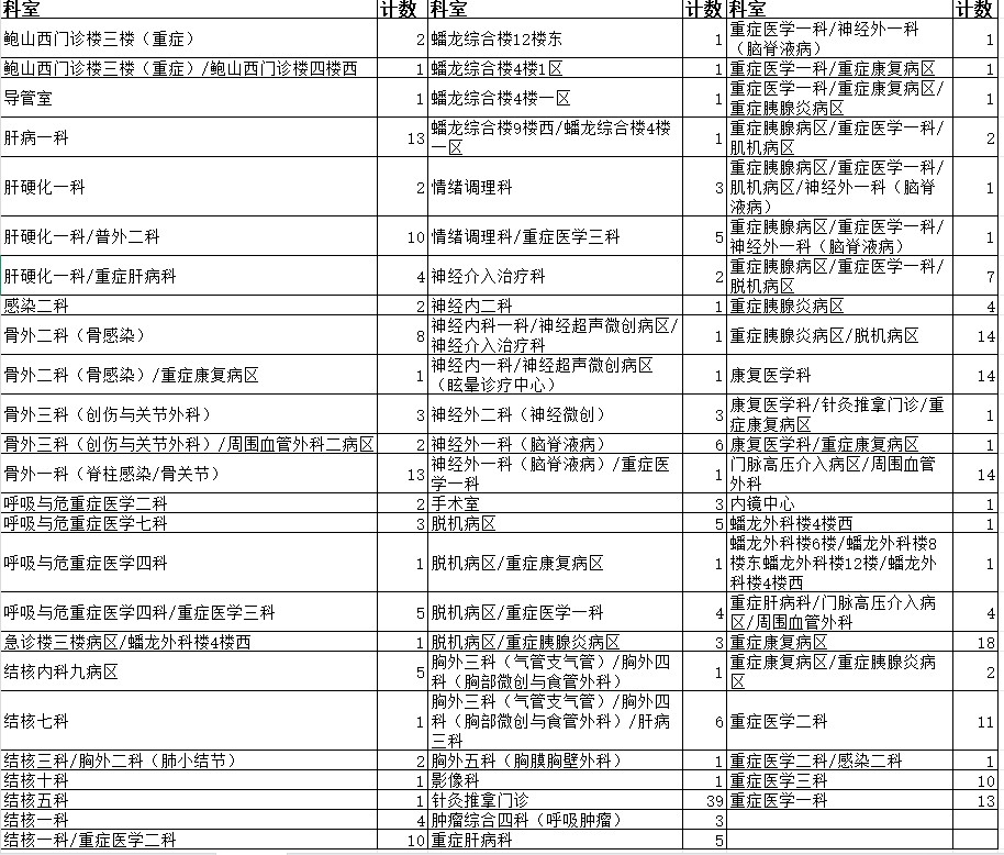 提供反馈材料具体要求:1、检验、检查类:需要提供该患者在本次住院期间涉及到该项目的所有检验、检查的报告单;2、诊疗类项目(经支气管镜治疗、中医埋针等)需要提供医嘱单、记录单、手术记录单及会诊单等;3、药品类涉嫌超医保限定条件支付条件报销:需要提供出院诊断、医嘱、病程记录、化验、检查报告单等,涉及科室如下:
