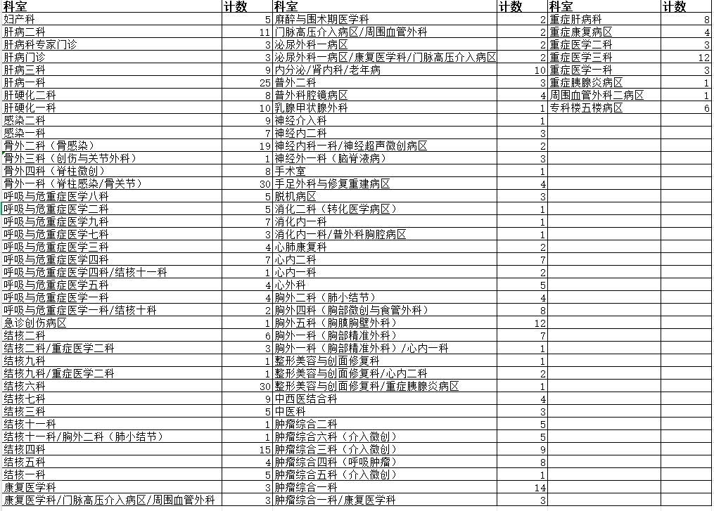 提供反馈材料具体要求:1、检验、检查类:需要提供该患者在本次住院期间涉及到该项目的所有检验、检查的报告单;2、诊疗类项目(经支气管镜治疗、中医埋针等)需要提供医嘱单、记录单、手术记录单及会诊单等;3、药品类涉嫌超医保限定条件支付条件报销:需要提供出院诊断、医嘱、病程记录、化验、报告单等,涉及科室如下: